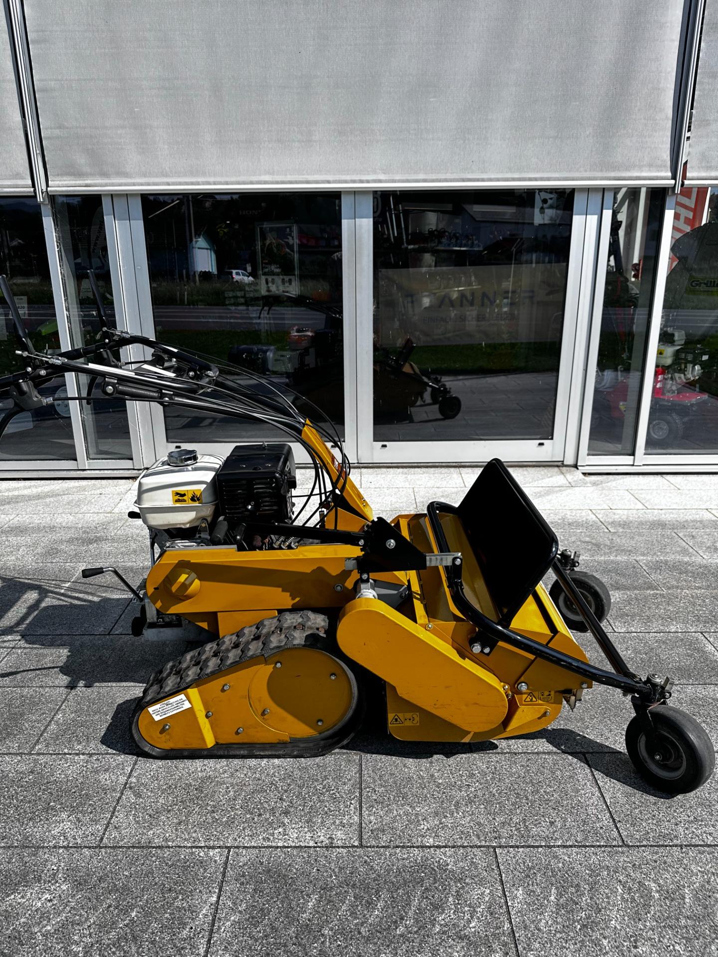 Das integrierte Raupenfahrwerk bietet eine hervorragende Traktion und Stabilität, insbesondere auf steilen oder unebenen Flächen. Dadurch bleibt der Mäher jederzeit sicher kontrollierbar und eignet sich optimal für schwieriges Terrain.